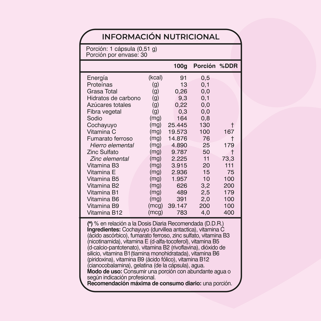 Tomar 1 cápsula en la mañana, de 30 minutos antes del desayuno☀ o con el desayuno siempre y cuando este no incluya lácteos ni té, (calcio dificulta la absorción de hierro).